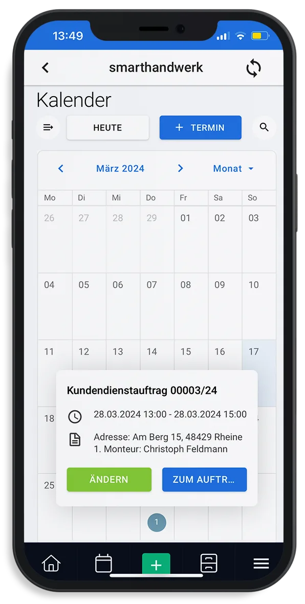 Mit der smarthandwerk App können so wichtige Funktionen unserer GaLaBau Software mobil genutzt werden. Termine geraten dank integrierten Kalender nicht mehr in Vergessenheit und wichtige Kundendaten (wie z.B. Adressen und Belege) können bei Bedarf einfach abgerufen werden. Dokumentieren Sie regelmäßig Ihren Arbeitsfortschritt mit Hilfe von Bildern? Dann sparen Sie sich die manuelle Übertragung in Ihre Handwerkersoftware. Legen Sie die Bilder zum Auftrag direkt in der App ab, die Synchronisierung übernimmt das System von alleine.